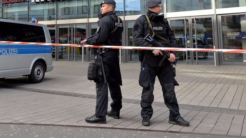 Német rendőrök gépfegyverrel őriznek egy bevásárlóközpontot (MTI/EPA Fotó)
