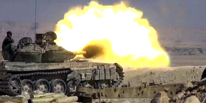 Bassár el-Ászád hadserege Dir ez-Zor kormányzóságban lövi az Iszlám Állam terroristáit (fotó: SANA)