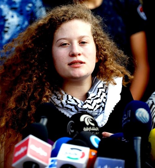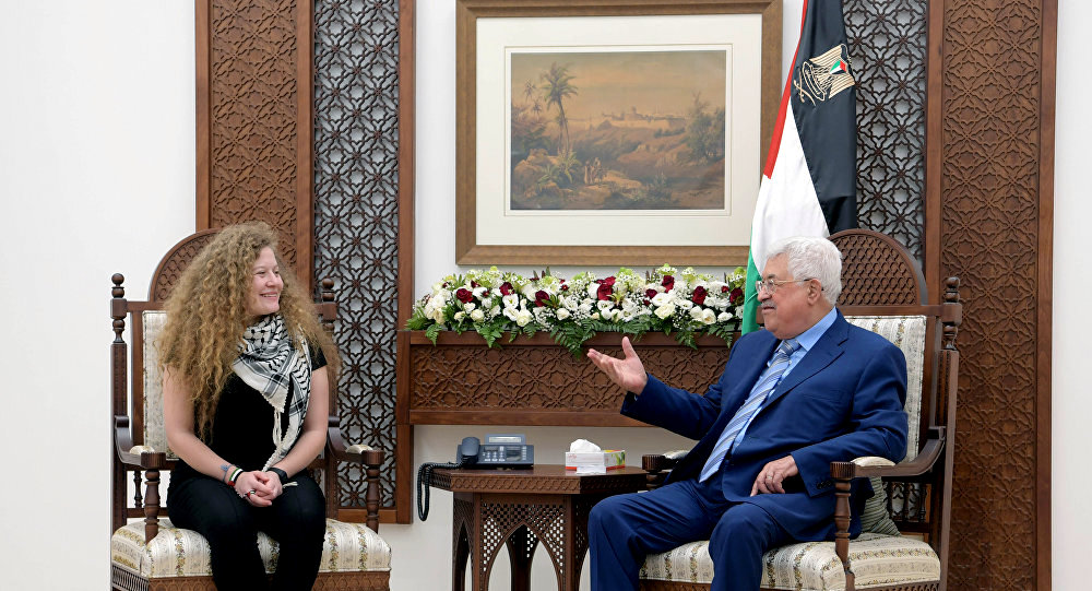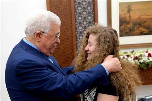 Mahmúd ’Abbász palesztin elnök az izraeli börtönből való szabadulása után rámalláhi hivatalában nemzeti hősnek kijáró tisztelettel fogadta a 17 éves’Áhed et-Tamímit. Amint azt portálunk is több ízben megírta, a megszállt ciszjordániai En-Nebi Száleh nevű palesztin faluban élő fiatal lány az elmúlt években többször is tüntetett a megszálló izraeli katonák jelenléte ellen, s egyszer az egyiket arcul is csapta. Nyolc hónapi raboskodás után, s széleskörű nemzetközi tiltakozás jóvoltából ’Áhed et-Tamími és édesanyja ma délelőtt szabadult – írja az izraeli Válláh!Hádásot és az aljazeera.net.