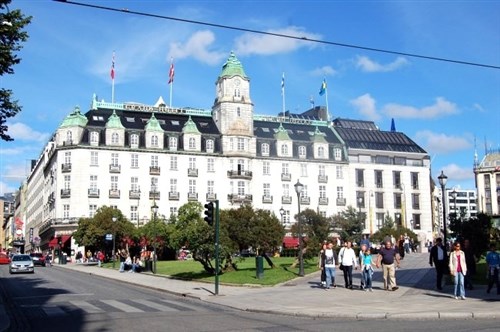 Magyarul: Pompás hanukiját helyeztek el az oslói Grand Hotel Szálló bejáratában, amely szállóban a világ legrangosabb díját adják át. Az ok: a díjasok igen magas aránya a zsidók körében.