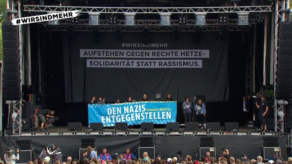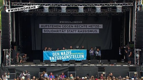 Több tízezren gyűltek össze hétfőn a németországi Chemnitzben egy ingyenes szabadtéri koncertre, amelyet a szervezők az utóbbi napok "erőszakba forduló tüntetései" (értsd: tényleges fellépés Németország megszállása ellen - a szerk.) után a „Felkelés a szélsőjobboldali uszítás ellen – Rasszizmus helyett szolidaritás” mottóval hirdettek meg.