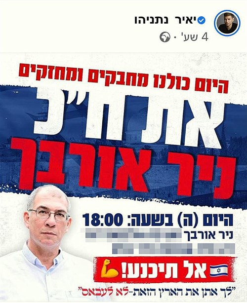 A Likud híveit Nir Orbach háza elé csődítő plakát