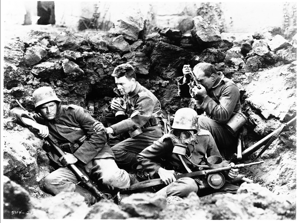 Kép a Nyugaton a helyzet változatlan című 1930-as filmből (Erich Maria Remarque magyarul azonos című regényéből készült), amelynek hőseit az iskolapadból ragadta el az első világháborús frontra a propaganda - a felkészítés érthető, de a gyakorlat könnyen fiatal életekbe kerülhet, a kijevi diadalmas kommunikáció pedig ellentmondásos