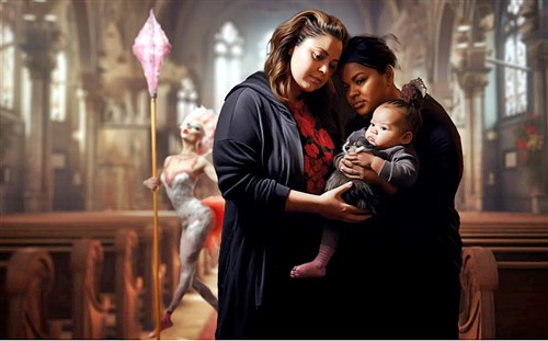 Az evangélikus egyház védnöksége alatt és finanszírozásával a Galilea-templomban időközben többször is színre vitt „queer-feminista betlehemes játék” valóban nagyon „furcsára” sikeredett (az angol queer szó jelentése: furcsa). A szép számú közönség ugyanis tanúja lehetett annak, hogy egy leszbikus vidéki házaspár, Mária és „József” szállást keres a nagyvárosban (nem Betlehemben, hanem Berlinben…)