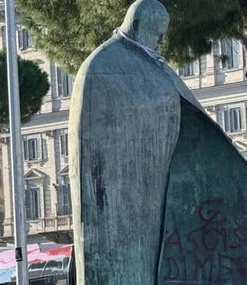 A tiltakozók korábban fekete-fehér kockás palesztin kendőt, keffijeh-t kötöttek II. János Pál szobra nyakába a Termini-pályaudvar előtti téren. A szombati tüntetéssel egy időben többek között a "fasiszta" felirat jelent meg a néhai katolikus egyházfő szobrán, amelyre sarló-kalapácsot is felrajzoltak.