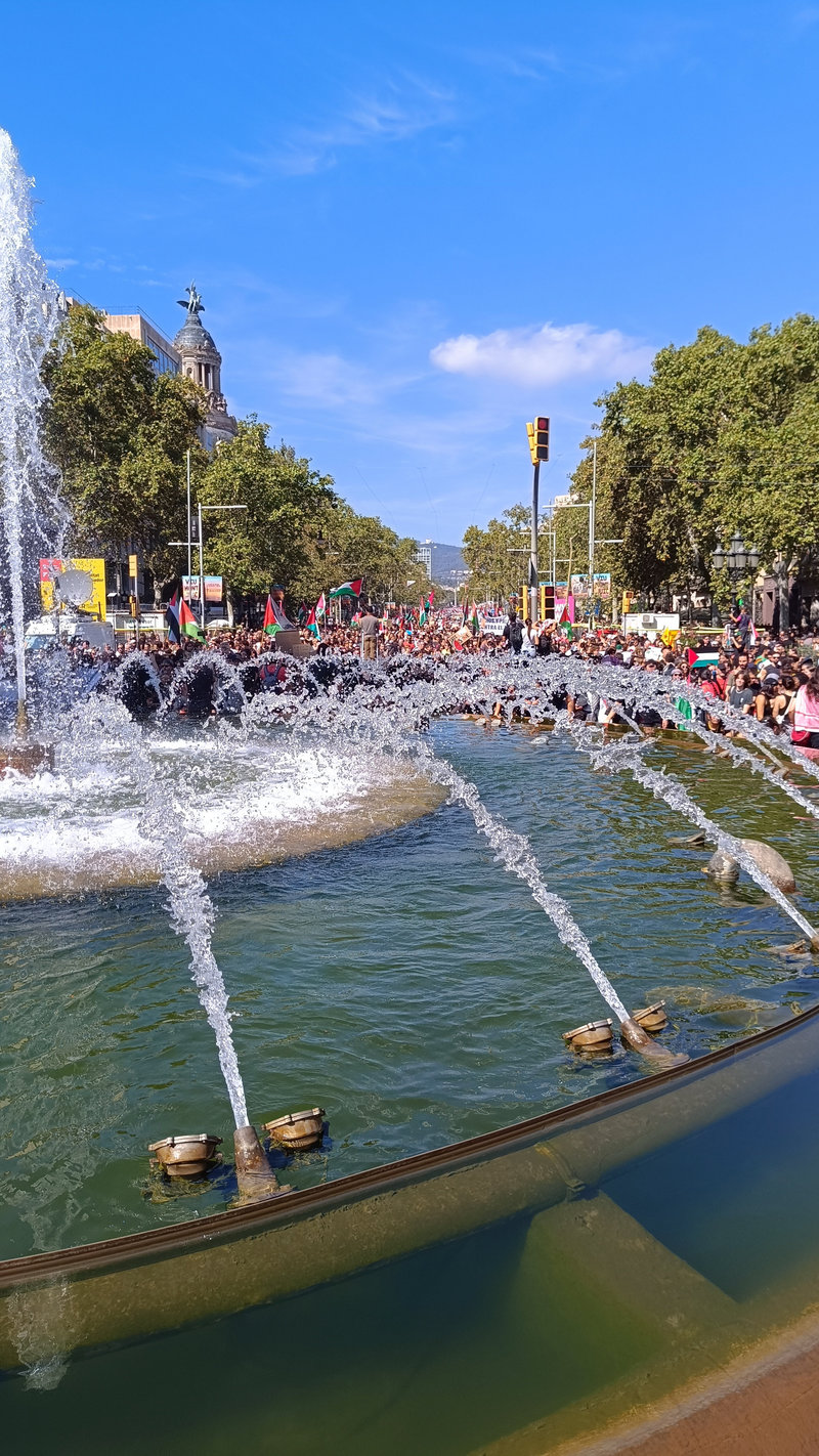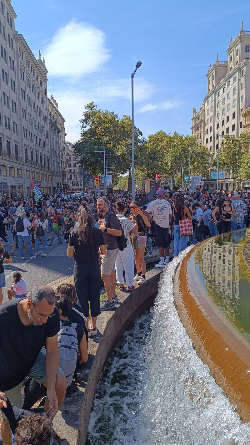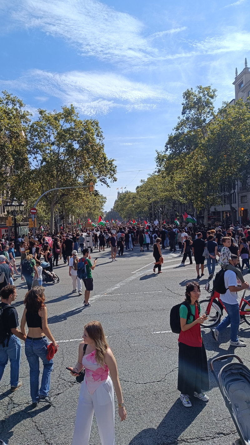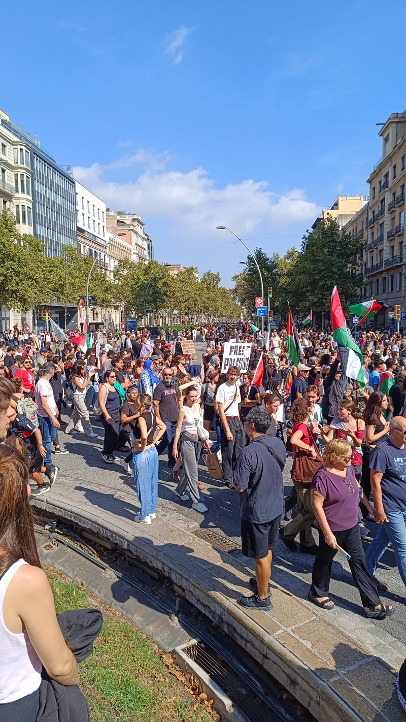A demonstrálók megtöltötték a Passeig de Gracia sugárutat. Többen palesztin zászlókat lengettek, illetve a palesztin ügyet támogató pólót viseltek. A barcelonai rendőrség közlése szerint 70 ezren vettek részt a szombati megmozduláson, a szervezők 300 ezer felvonulóról adtak hírt.