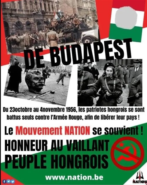 A belga hazafias párt, a NATION aktivistái az 1956-os magyar hősök előtt tisztelegtek. A szervezet nem csak honlapján szentelt egy bejegyzést az antikommunista felkelés mártírjainak és hőseinek, de egy Vallóniában felállított emlékművet is megkoszorúztak.