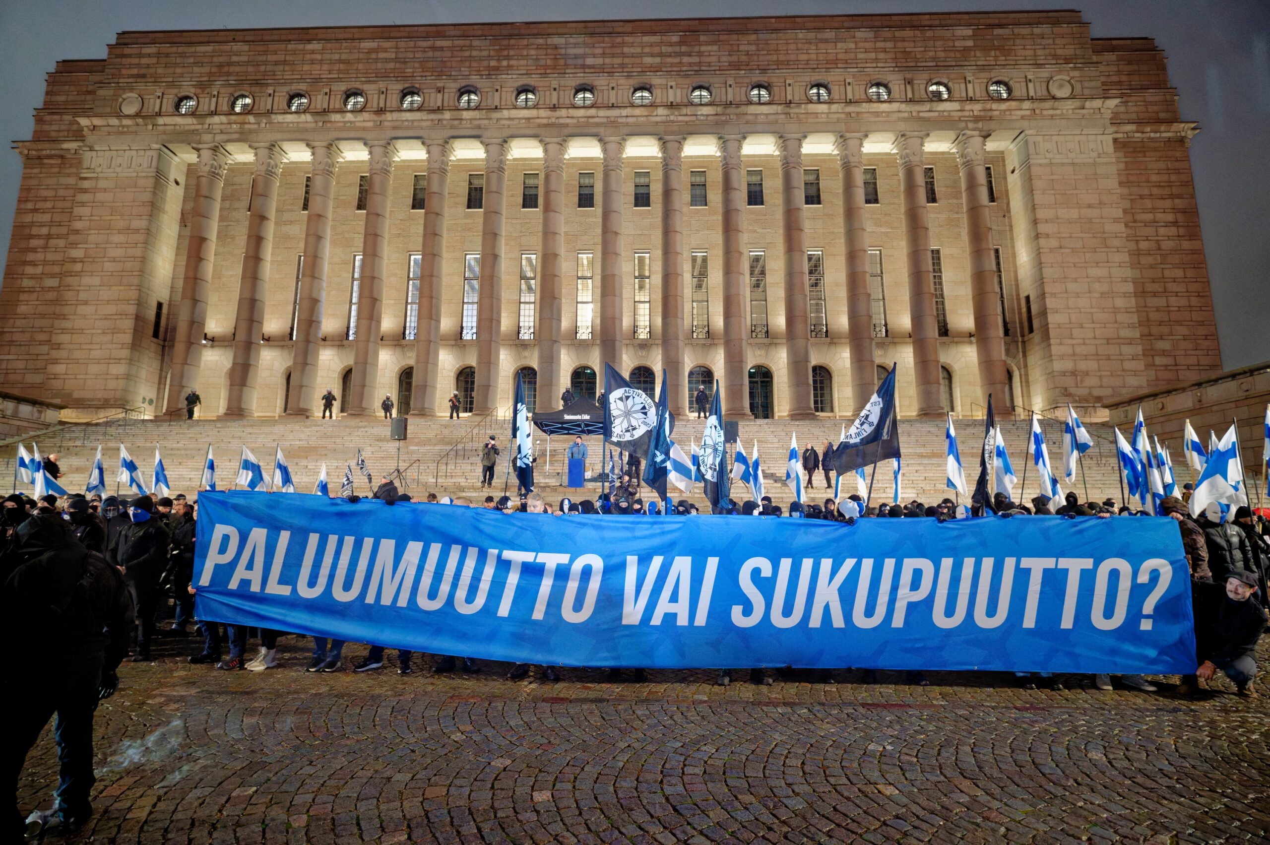 Hangsúlyozták, hogy a finneknek választaniuk kell, hogy vagy a multik és a globalisták engedelmes rabszolgáiként képzelik el jövőjüket, vagy a tradicionális értékekhez nyúlva alakítják az elkövetkező generációk jövőjét, ahol a nemzeti eszme nem egy múzeumi darab, hanem mindenki természetes nemzeti élet- és cselekvésmódja.