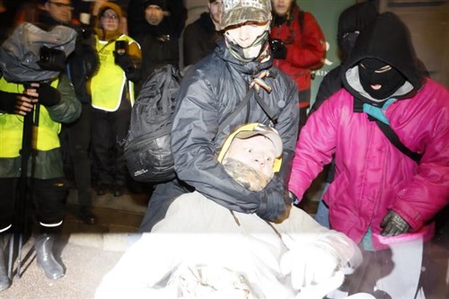 A fenti magasztos eszmék természetesen ott sem nyerték el a helyi söpredék, a szélsőbaloldal támogatását. Az antifák nem tudtak konfrontálódni a nacionalisttákkal, mert a rendőrség elválasztotta egymástól a hazafiakat és a hazátlanokat, egy személyt kivéve. Amint a menet elindult, egy szélsőbalos próbálta útját állni a hazafiaknak, miközben azt kiáltozta, hogy "szégyen!". A menet egyik dobosával fizikai konfrontációba került, végül a rendőrök eltávolították a bolsevista felforgatót.