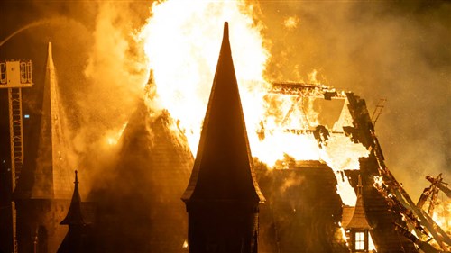 A híroldal szerint a tűz körülbelül 0:50-kor keletkezett a templomban. A tűzoltók továbbra is dolgoznak az oltáson, a szóvivő szerint „mindent megtesznek azért, hogy megmentsék, ami még megmenthető”, ám a torony mellett a templom középső részének egy része is beomlott. Sérültekről eddig nincs információ, a biztonsági régió szóvivője szerint egyelőre mindenesetre nem érkezett ilyen bejelentés.
