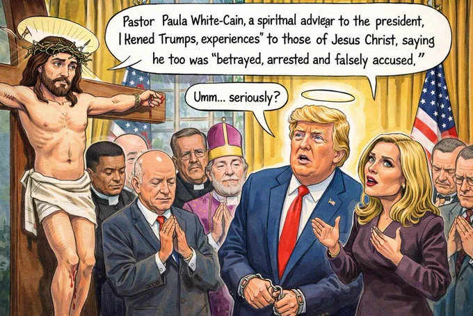 Paula White-Caine, a Fehér Ház hitügyekben illetékes vezető tanácsadója, Trump személyes spirituális vezetője ugyanis április elsején, az elnöki rezidencián megtartott húsvéti löncsön magához Jézus Krisztushoz hasonlította az elnököt, azt sugallva, hogy ő messiás, és nem áprilisi tréfának szánta.