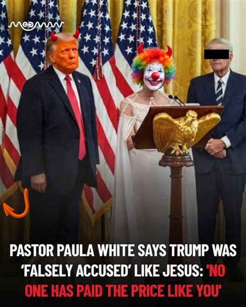 White-Cain szerint Trump a „hit legnagyobb bajnoka, akit valaha egy elnökben láttunk”. Ezekkel a szavakkal a jelenleg már a harmadik férjét koptató teleevangelista nőszemély a szintén harmadik házasságban élő Trumpot hozsanázza, akit 34 rendbeli üzleti dokumentumok hamisításának bűntettében találtak bűnösnek, akit számtalan esetben szexuális visszaéléssel vádoltak, és aki évtizedeken keresztül puszipajtása volt Jeffrey Epsteinnek.
