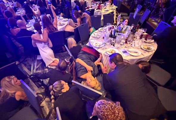 A lövöldözés a földalatti bálterem előtt történt, ahol több ezer vacsoravendég vett részt.