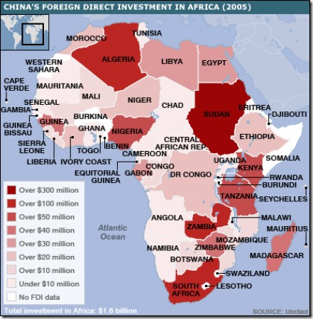 A hidegháború vége óta az első alkalommal történik, hogy Amerika aggodalommal kezdi szemlélni a kínai energia és nyersanyag kitermelő vállalatok afrikai jelenlétét. Jövőbeli energiaszükségleteit felismerve, Kína nagyszabású gazdasági diplomáciai tárgyalásokat kezdett néhány éve afrikai országokkal, ami 2006-ban kulminálódott, amikor is „Peking több mint negyven afrikai államfő lába elé gurított, a szó szoros értelmében piros szőnyeget és gazdasági kérdések egész soráról tárgyalt. Egyik sem volt fontosabb, mint a jövő, afrikai olajkészleteinek biztosítása Kína robosztus iparosítása számára.” Kína több olyan országban jelent meg, melyet Franciaország, Anglia, Portugália vagy más, korábbi gyarmati hatalmak magukra hagytak.