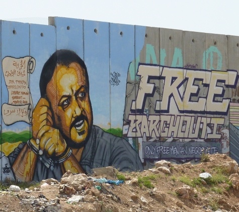 Bárgúti szabadságát követelő graffiti az „apartheidfalon”