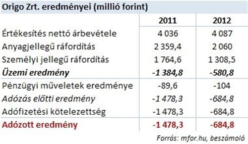 Mindezek eredményeként már üzemi szinten jelentős javulás mutatkozott, hiszen a 2011-es 1,3 milliárdos veszteség után tavaly 580 milliós keletkezett, amit aztán egy 100 milliós pénzügyi veszteség tovább növelt, és végül 685 milliós mínusszal zárta az Origó 2012-t.