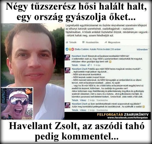 Az LMP-s Szél Bernadett Facebook-oldalán, a katonák halálával kapcsolatos politikusi részvétnyilvánítás alatti kommentek között találkozhatunk élőben az alábbi megnyilvánulásokkal - írja a Havellant Zsolt véleményét utánközlő Fb-csoport.