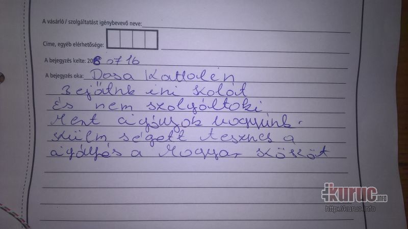 A panasz szövege egyébként: