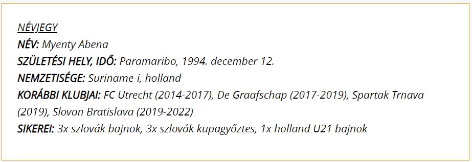 Az Európa-ligában nyolcaddöntős Ferencváros csütörtökön leigazolta a Slovan Bratislavától Myenty Abena suriname-i válogatott labdarúgót - közölte az MTI.