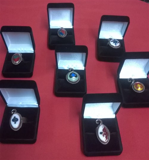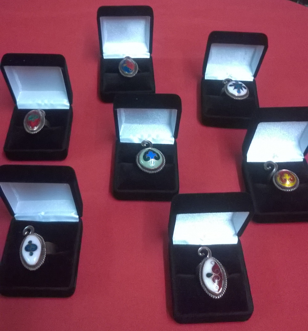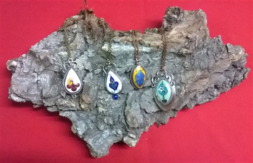 A Szkíta Kézműves Boltba nagyon szép tűzzománc ékszerek érkeztek. Többféle mintával és és színben kaphatók medálok és gyűrűk. Áruk: 9400 és 6000 Ft.