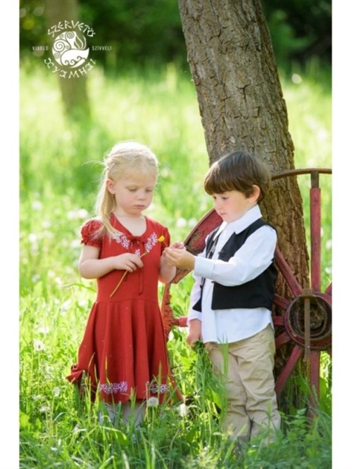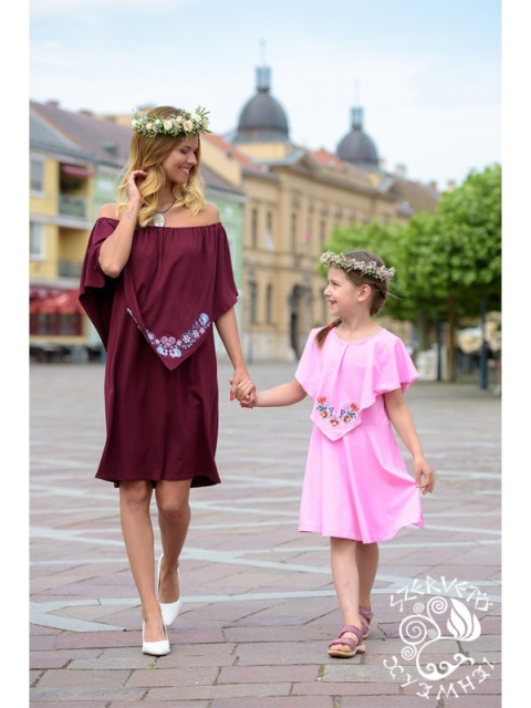 Szellő lányka ruha Szervető kalocsai hímzéssel (rózsaszín)
