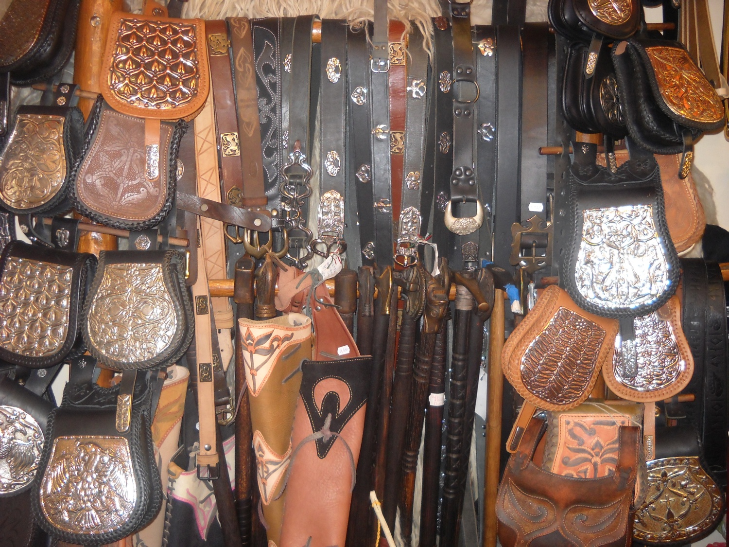 Egyedülállóan széles választék veretes bőrövekből, tarsolyokból, fokosokból a Szkíta Kézműves Boltokban.