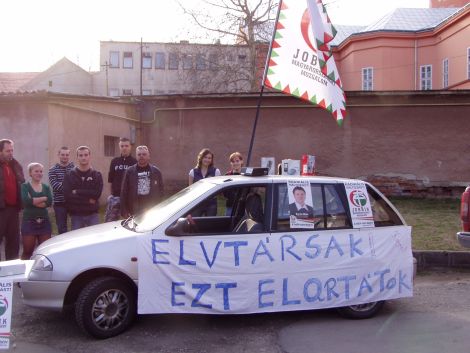 A Magyar Szocialista Párt miniszterelnök-jelöltje látogatott tegnap Baranyába. Többek közt felkereste Siklós városát is, ahol a helyi művelődési házban tartott lakossági fórumot. A Jobbik helyi szervezete egy kis ajándékkal kedveskedett számára. Pár Nokiás doboz és az „Elvtársak ezt elqurtátok” feliratú molinó díszelgett a miniszterelnök-jelölt kampányautója előtt Jobbik zászlóval.