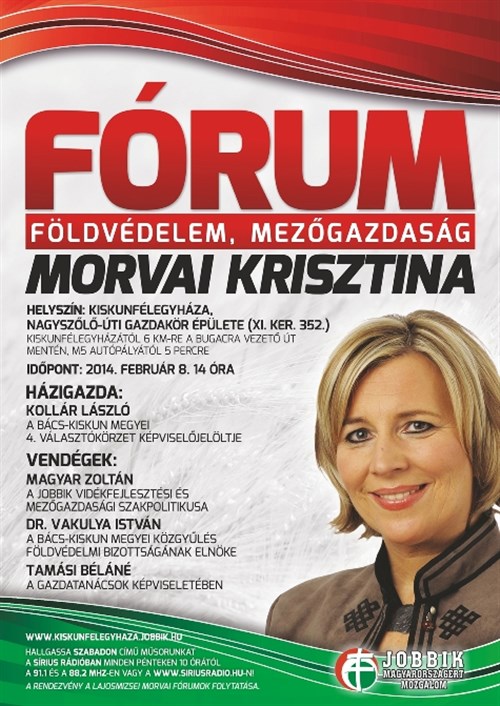 Földvédelmi fórumot tart Kiskunfélegyházán Morvai Krisztina