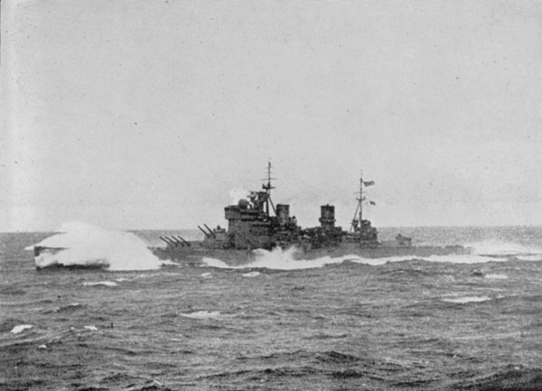 A brit King George V csatahajó. Látszik, hogy még viszonylag gyenge hullámzás esetén is vizes lett a fedélzet