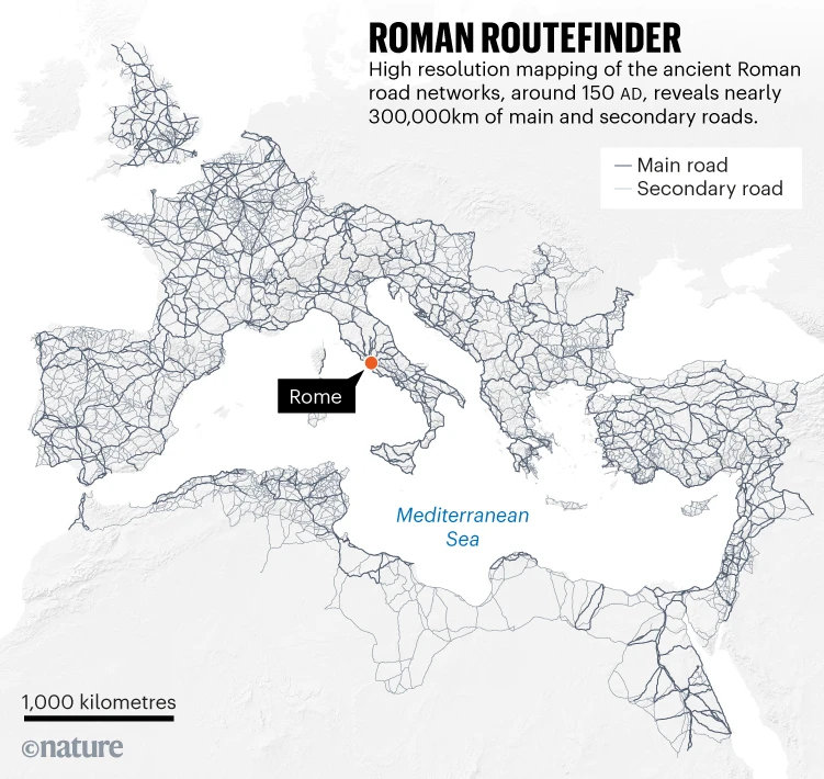 Korábban a római utak hosszát körülbelül 188 555 kilométerre becsülték. Az új térképen azonban már 300 000 kilométernyi hosszúságú úthálózat látható a Római Birodalom Kr.u. 150 körüli legnagyobb kiterjedésének idején.