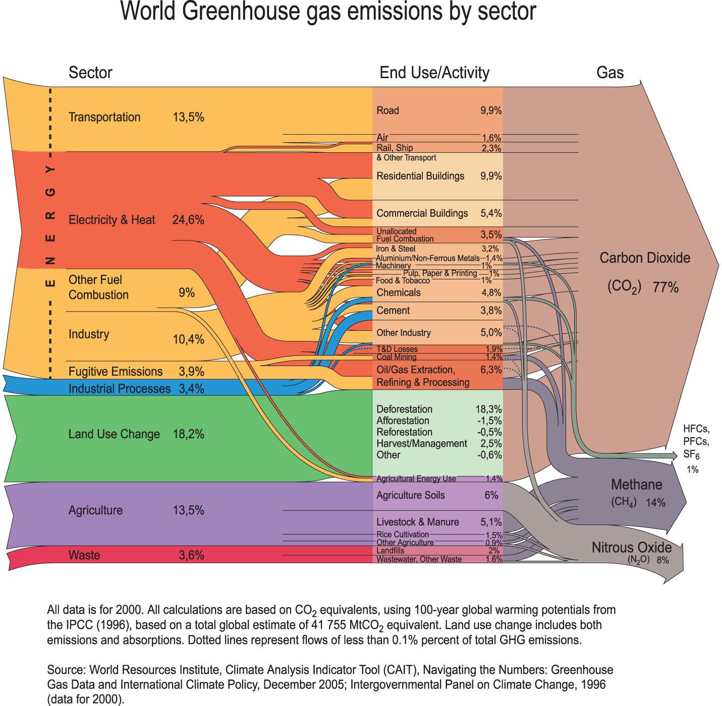 Viszont mivel fennáll a lehetősége, hogy katasztrofális mértékű klímaváltozást okozunk az üvegházgáz kibocsátással, ezért szükséges megvizsgálni a cselekvési lehetőségeket, hogy lehetséges-e érdemi mértékben befolyásolni az üvegházgáz-kibocsátást. Ehhez először szükséges megvizsgálni a globális kibocsátások szerkezetét, illetve hogy a főbb kibocsátási forrásokat lehetséges-e megszüntetni.
