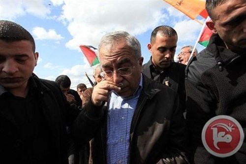 Szalám Fajjád palesztin miniszterelnök ma délután a Rámalláh város közelében levő Bil'ín faluban tartott tiltakozáson éppen beszédet mondott, amikor a megszálló izraeli katonaság könnyfakasztógázt és gumilövedéket lőtt ki a politikus és a környezetében tartózkodó tüntetők irányába. A palesztin kormányfő a belélegzett gáztól rosszul lett, majd kórházba szállították – jelenti a Má'án Palesztin Hírügynökség és a Válláh!Hádásot izraeli hírportál.