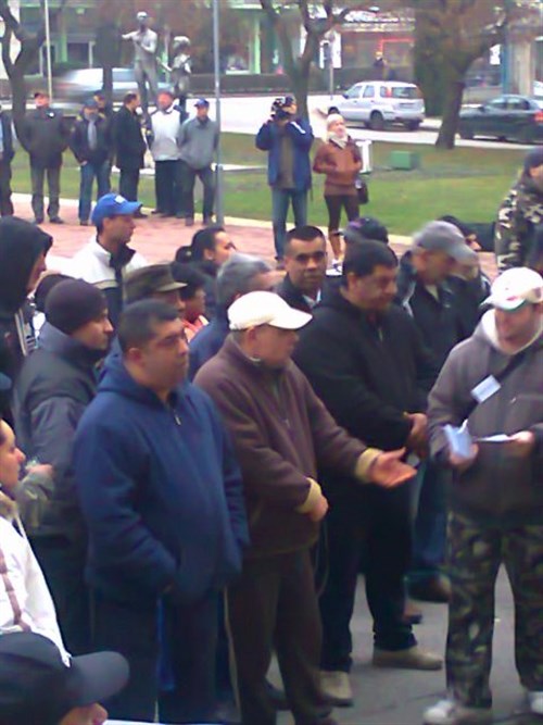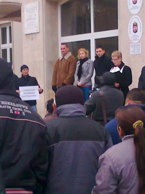 A tüntetés mottója a "Tégy a gyűlöletkeltés ellen!" volt. A képeken jól látszik, igencsak kevesen támogatták a kezdeményezést. A tüntetők kétharmada cigány volt. A helyi cigányvezető közhasznú munkásai voltak. Megkérdeztük Polics József kegyeltjeit és azt mondták, Erzsébet utalvány ígértek be nekik. Szóval a kétharmados Fidesz támogatása a 25 ezres városban csak ekkora. És ha a cigányokat leszámítjuk, még ennyi sem.