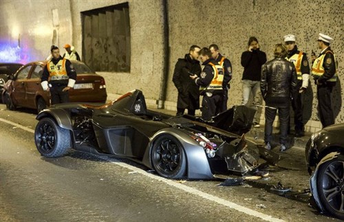Csütörtök délután a Lánchíd alagútjában törte ripityára rendszám nélküli luxuskocsiját egy "kanadai" üzletember. A Bac Mono típusú versenyautót a Budapesten élő Josh Cartu vezette.