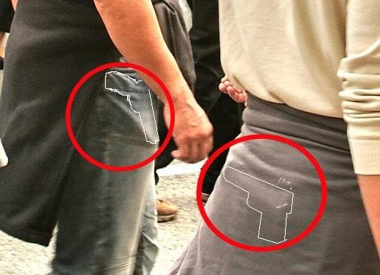 Kuruc.info olvasó: T. Szerkesztőség! Az ávósokkal kapcsolatban úgy látom, igazuk van, viszont annyit hozzátennék, hogy a képen nem vipera van náluk, hanem pisztoly. A bal oldali embernek a jobb farmerzsebében tisztán látható a pisztoly körvonala, a jobb oldali embernél pedig úgy néz ki, mintha kétpontos felfüggesztésű külső tokban hordaná. Pontoztam a toknak az övre való felfüggesztését, a szaggatottal jelölt kidudorodás a biztosító karnak köszönhető.