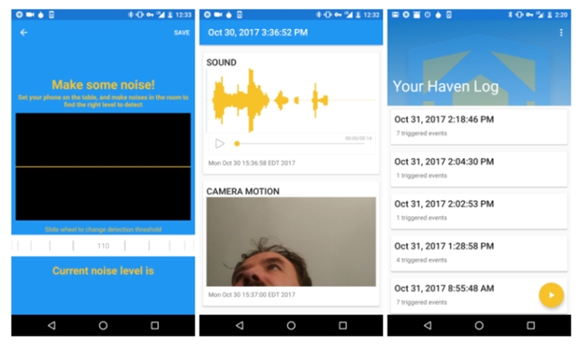 Amikor a Haven appal felszerelt mobil szenzorai mozgást, arra utaló fényviszony-változást vagy hangot érzékelnek, akkor aktiválja magát a biztonsági megfigyelő rendszer. Az app fotókat készít és hangot is rögzít, majd ezeket az információkat továbbítja a felhasználó másik (rendszeresen, elsődlegesen használt) telefonjára.