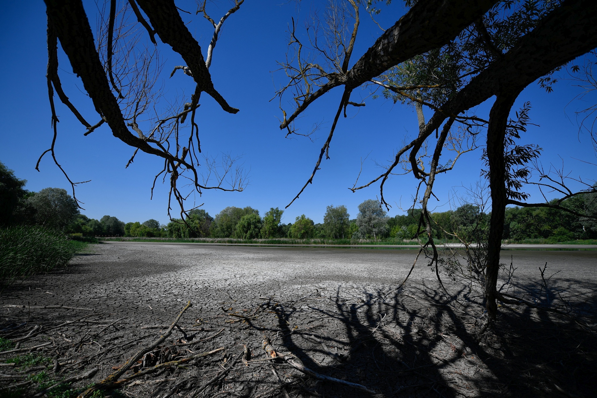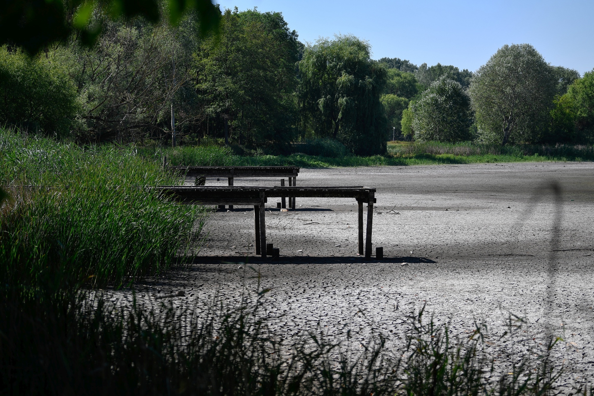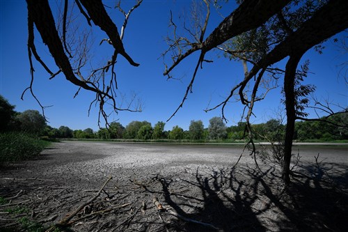 A csapadékhiány miatt kiszáradt Vekeri-tó Debrecen közelében 2022. július 4-én
