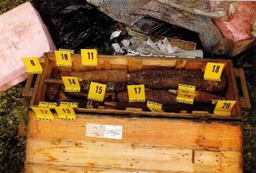 A rendőrök a házkutatást egy időre felfüggesztették, mert az udvar különböző pontjain robbanóanyagokat, robbanószereket találtak - írták. Már órák óta tartott a szemle, amikor a lőszereket és a gránátokat felfedezték, ezért a Készenléti Rendőrség tűzszerészeit riasztották; 98, többségében gyalogsági lőszert és gránátot vittek biztonságos megsemmisítő helyre.