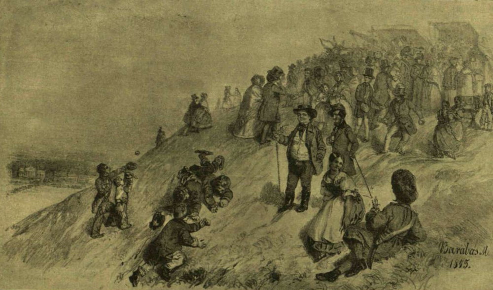 Húsvéti mulatozás a Gellért-hegyen 1845-ben. Barabás Miklós rajza (forrás: Wikipedia)