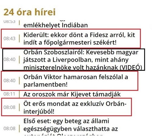 Önkívületi állapotban a Fidesz-nyaló részleg, amíg kávézik és felkészül az Izraelről és a zsidókról dicshimnuszokat zengő szakosztály - három hírt kellően lelkesen közöltek, de még mindig nem elég jó: egy órába ugyanis sikerült egy negyedik orbános hírt is becsempészni (egy percen belül a másodikat), oda azonban már nem jutott felkiáltójel, így joggal kérdőjelezhető meg a pártunk és vezérünk iránt érzett őszinte csodálatuk...