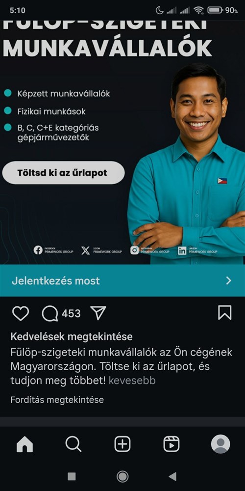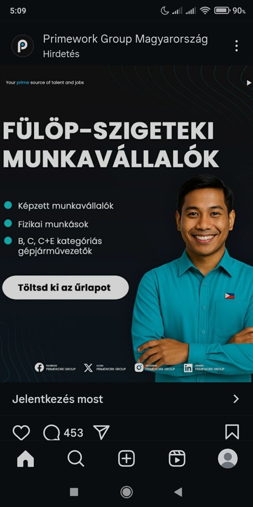 3. Az alábbi reklámot az Instagram dobta fel egy kedves olvasónknak. A Primework Group Magyarország egy nemzetközi munkaerő-közvetítő ügynökség, akik a piaci rést kihasználva már konkrétan ázsiai munkaerő közvetítésével foglalkoznak.