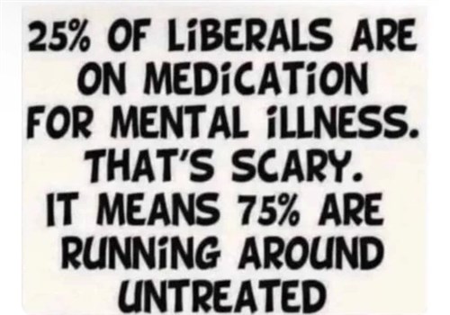 A liberálisok egynegyedét elmebetegséggel kezelik. Ez ijesztő, mert azt jelenti, hogy a maradék kezeletlenül rohangál