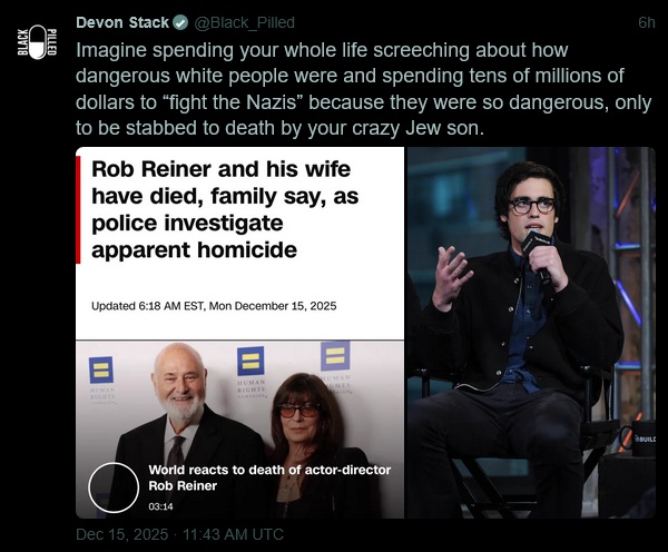 Mint portálunk is beszámolt róla, vasárnap otthonában találták holtan a zsidó rendezőt, Rob Reinert és feleségét. Mindkettejük testén szúrt sebek voltak, később több forrás is megerősítette, hogy feltételezhetően saját fiuk, Nick gyilkolta meg őket.