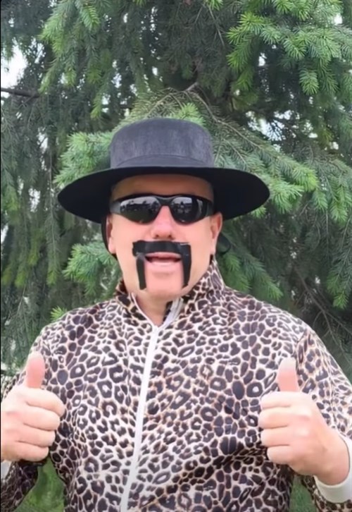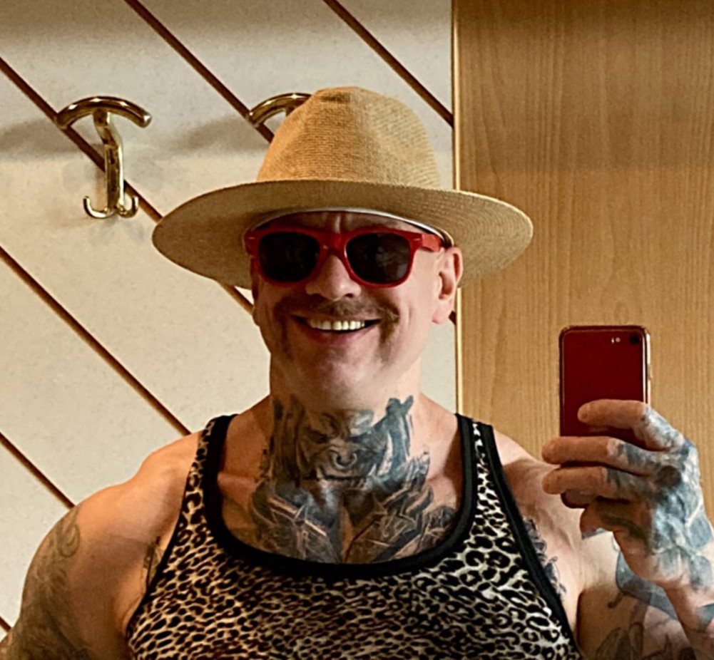 Egy ismeretlen férfi leopárdmintás felsőben, Marla Army 88 felirattal