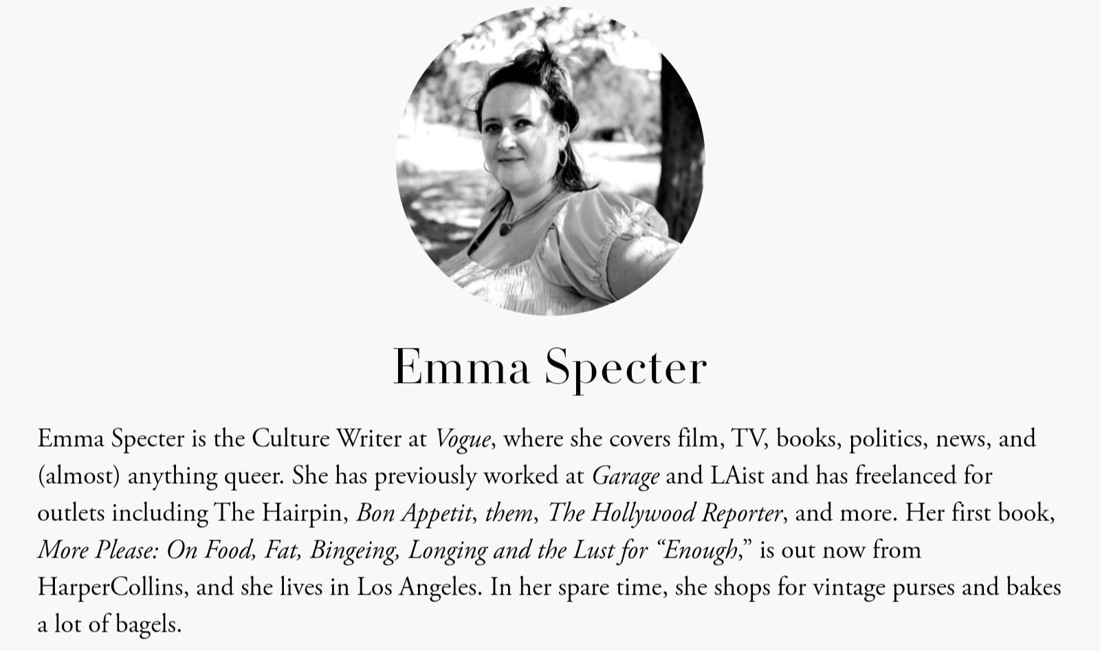A hagyományos fehér szépségideál „dekonstrukciója”, amelyet a frankfurti iskolás zsidó média művel immár évtizedek óta, egyrészt a kövérség és slamposság normalizálását, másrészt a testi higiénia és az elegancia elutasítását eredményezte, amely folyamatnak maga Emma Specter az archetípusos reklámfigurája.