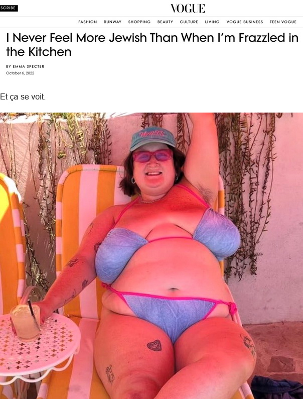 Most a világ vezető, és történetesen zsidó tulajdonban lévő divatlapjának az egyik fajtárs „virágszála” tett meg minden tőle telhetőt – konkrétan mindent, amit a testtömege engedett – ennek érdekében.