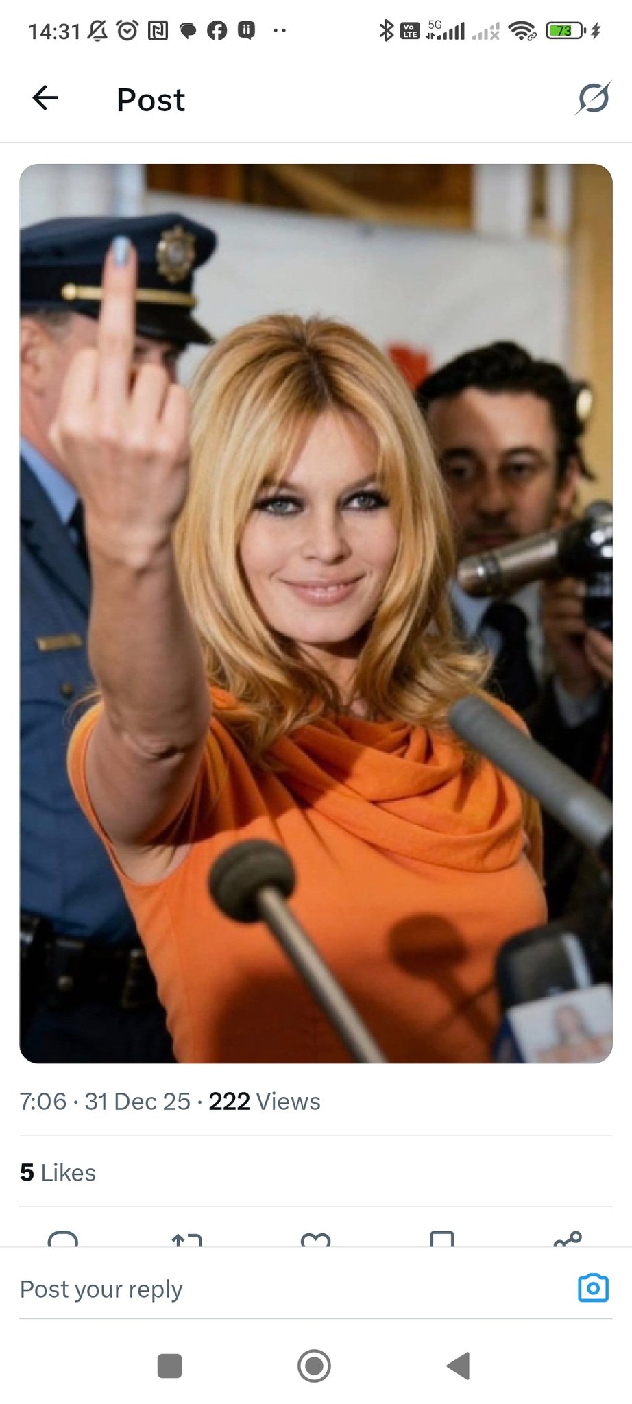 Emma Specter, a magazin kulturális rovatának munkatársa képletesen megtépte Brigitte Bardot haját, amiért a 60-as évek szexszimbóluma a későbbi életében szélsőjobboldali politikusokat (Jean-Marie Le Pent) támogatott, lekicsinyelte a filmiparban szexuális bántalmazást elszenvedő nők MeToo mozgalmát, és felemelte szavát országa iszlamizálódása ellen.