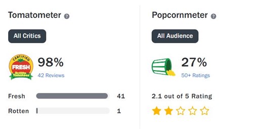 Végül érdemes egy pillanatra megnézni, milyen ordító különbségek vannak a kritikusok és a közönség értékelései között.