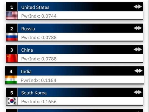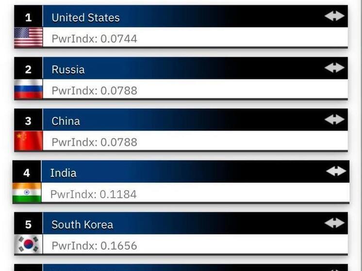 Oroszország ráadásul nem is kicsit húzott el Kínától: Moszkva 0,0791-es értékelést kapott GFP-től, szorosan a listavezető USA mögött, amely 0,0741-es értékelést kapott. A harmadik helyezett, Kína 0,0919-es értékelést kapott - a különbség jelentősen nőtt Peking és Moszkva helyezése között, a két ország tavaly még holtversenyben volt. (Az alacsonyabb GFP-érték jelent jobb helyezést a rangsorban.)