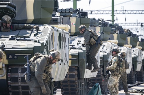 Lynx lövészpáncélosok az Adaptive Hussars 2025 hadgyakorlaton (fotó: MTI/Szigetváry Zsolt)